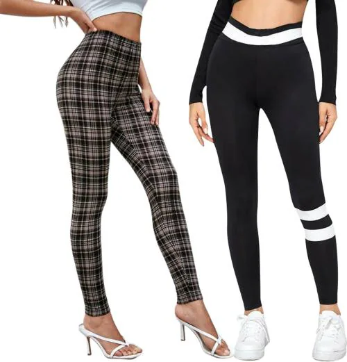 Alisba Women Multicolor Solid Lycra Blend Pack Of 2 Jegging (Xs)