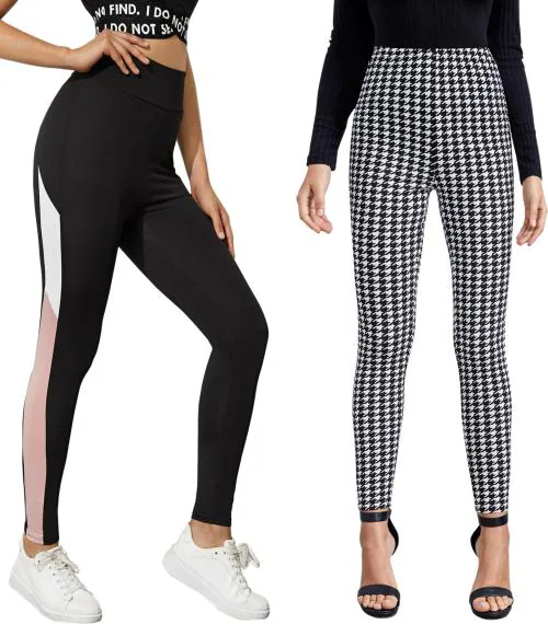 Alisba Women Multicolor Striped Lycra Blend Pack Of 2 Jegging (L)