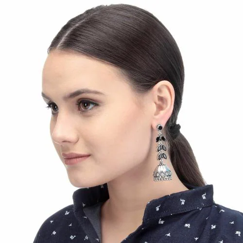 Alloy And Artificial Stones Jhumkas Artificial Fashion Jewellery For Women Black Color