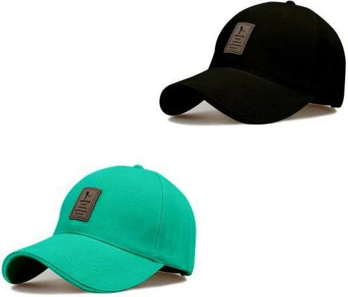 ALMOS Unisex Black, Light Green Cotton Pack of 2 Baseball Cap (Free Size)