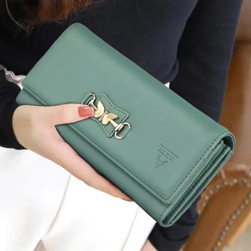 ALSU Women's Light Green Hand Wallet Clutch Trendy | Phone Pocket | 6 Card Slots| Butterfly Stud (arf-008blugrn)