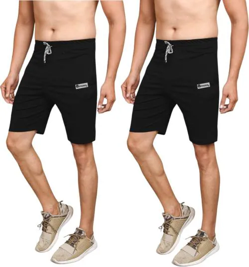 Amazee Men Black Solid Lycra Blend, Polyester Sports Shorts (L) Pack of 2
