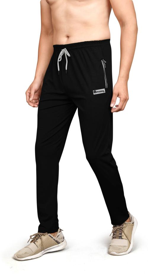 Amazee Men Black Solid Lycra Blend Track Pants (Xxl)