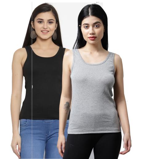 AMBEYCITY Women Black Grey Cotton U-neck Solid Tank top