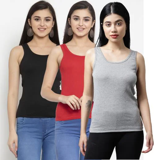 AMBEYCITY Women Black Red Grey Cotton U-neck Solid Tank top_Pack of 3