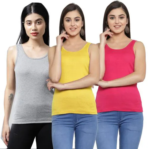 AMBEYCITY Women Grey Yellow Rani Cotton U-neck Solid Tank top
