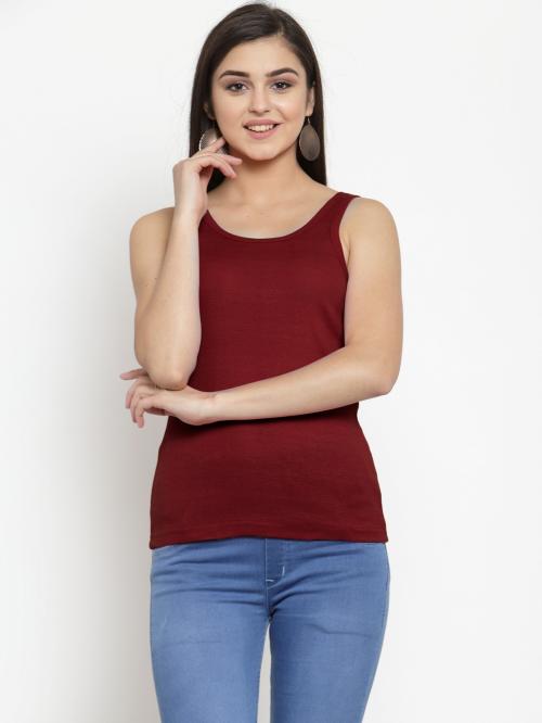 AMBEYCITY Women Maroon Cotton U-neck Solid Tank top
