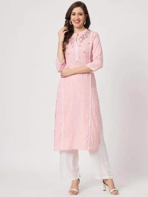 AMIRA'S INDIA ETHNIC WEAR Womens Dyed Yarn Viscose Embroidered Straight Kurta (Baby Pink)