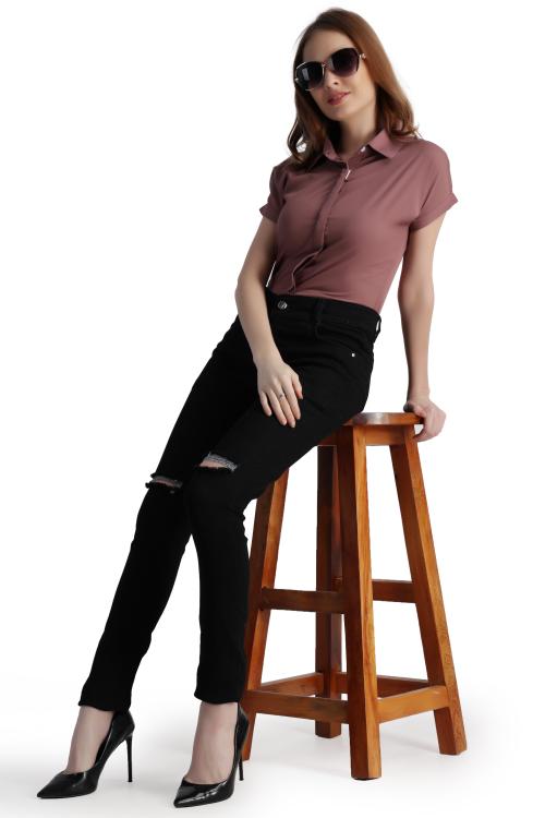 AML FASHION HUB Brown Color Solid Crepe Casual Shirt
