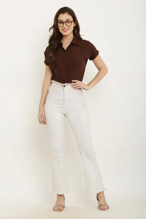 AML FASHION HUB Coffee Color Solid Crepe Casual Shirt