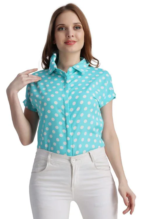 AML FASHION HUB Sea Green Color Printed Crepe Casual Shirt
