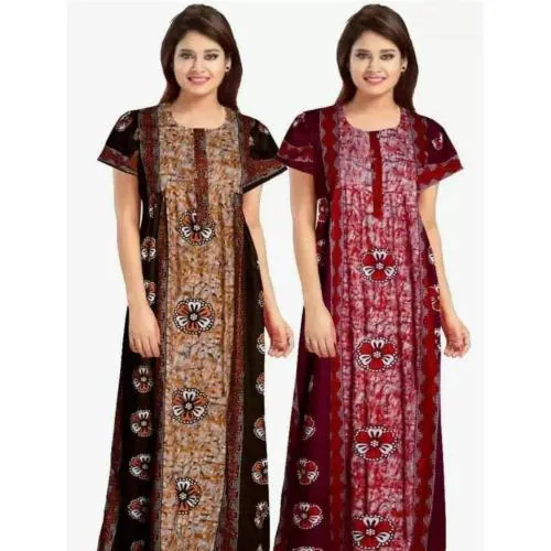 ANANT CREATION Printed Women’s Nighty Soft and Comfortable Floral Print Nightwear for Women, Full Length | Brown-Maroon | Size-XL | Pack of 2