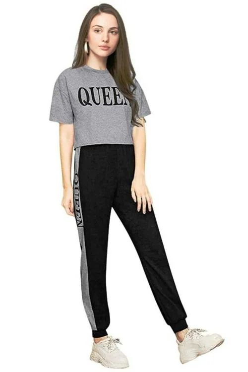 Andaria Fashion Hub Cotton Stylish Sports Use Tracksuit Women's Yoga Track Suit ( Grey-XL)