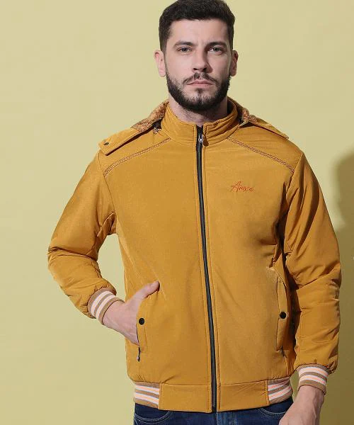 Anixa Men Mustard Wool Blend Solid Hooded Jacket