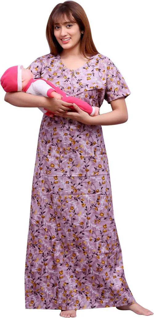 Ankona Women Grey Printed Cotton Maternity Nighty L Nighty For Women L Womens Nighty L Printed Nighty L Plain Nighlty L Ladies Night Wear