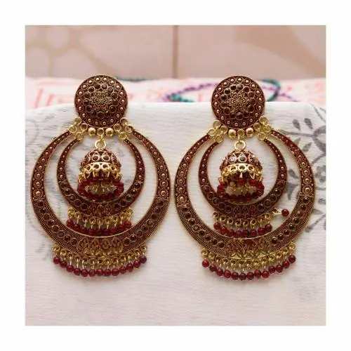 Antico Bollywood style ethnic Maroon Color Oxidized Chandbali Jhumka Earrings for Women