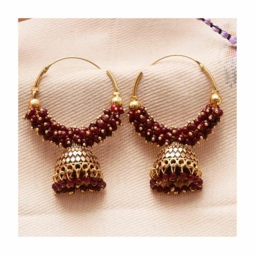 Antico Bollywood style ethnic Maroon Color Oxidized Hoop Jhumka Earrings for Women