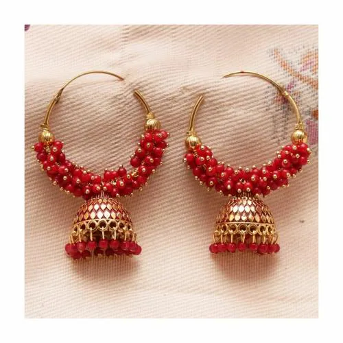 Antico Traditional Ethnic Antique Red Color Oxidized hoop Jhumka Jhumki for Women