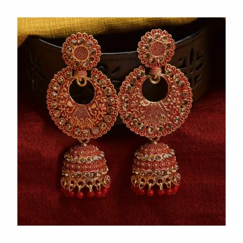Antico Traditional Ethnic Antique Red Color Oxidized Jhumka Jhumki for Women and Girls