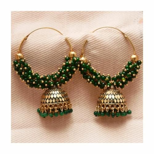 Antico Traditional Ethnic Fancy Green Color hoop Oxidized Jhumka Jhumki for Women