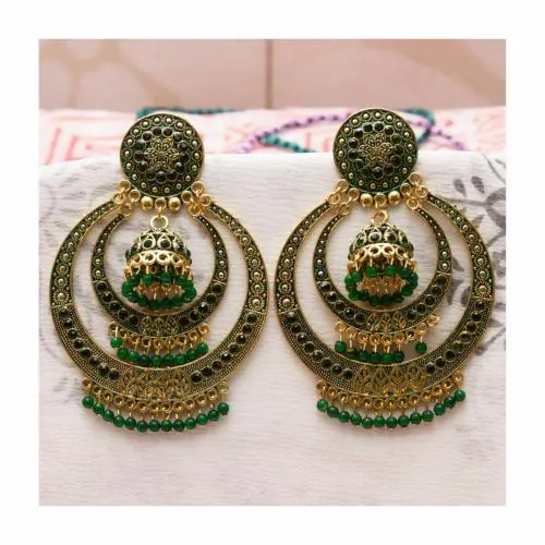 Antico Traditional Ethnic Fancy Green Color Oxidized Chandbali Jhumka Jhumki for Women