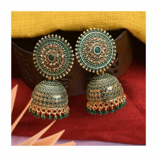 Antico Traditional Ethnic Fancy Green Color Oxidized Jhumka Jhumki for Women and Girls