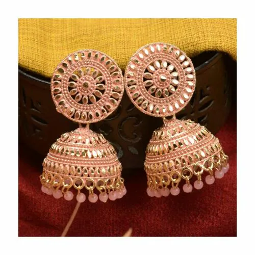 Antico Traditional Ethnic Peach Color Oxidized Jhumka Jhumki Earrings for Women