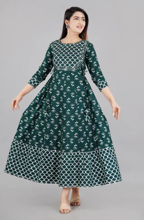 AO Services Green Gota Work Rayon Fabric Designer Dress Floral Print