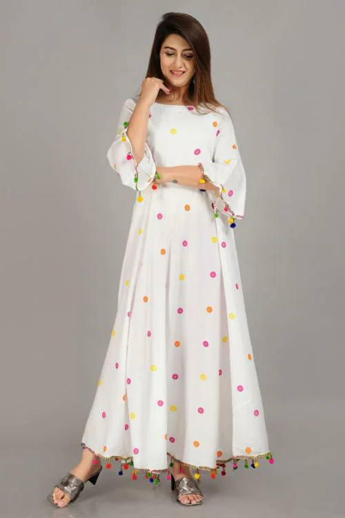 AO SERVICES Women White Floral Print Cotton Anarkali Kurta