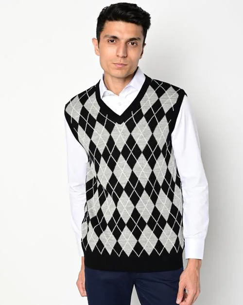 Argyle-Knit Sleeveless Pullover