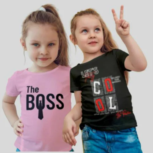 Arsha lifestyle Girls Round Neck Printed Blended Cotton Tshirt(Pink-Black-Pack of 2)