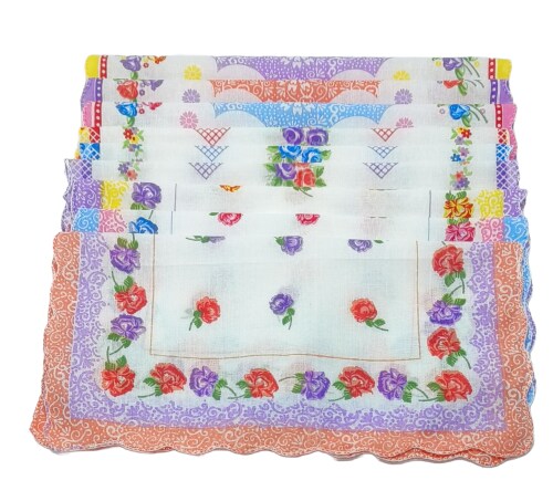 - (A) Made of cotton fabric, soft texture and comfortable, different beautiful floral design, the wavy edge makes these ladies hankies very elegant. A perfect gift for your mother, sister, wife, daughter, grandma, friends or yourself. Purely fascinating flo