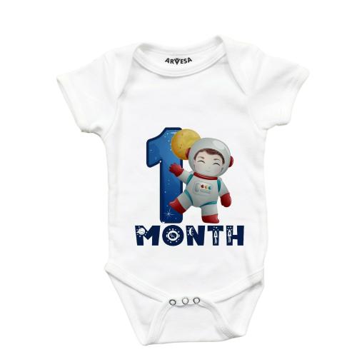 Arvesa 1 Month Monthly Birthday Unisex Baby 0-3 Month White Romper Onesie R-1009-S-WHITE