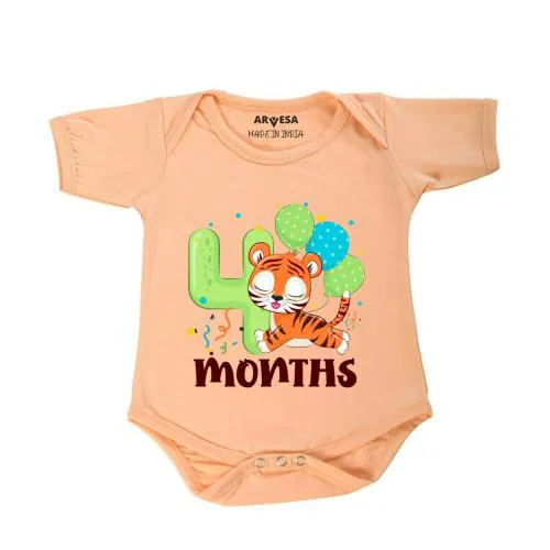 Arvesa 4 Month Monthly Birthday Unisex Baby 3-6 Month Peach Romper Onesie R-1069-M-PEACH