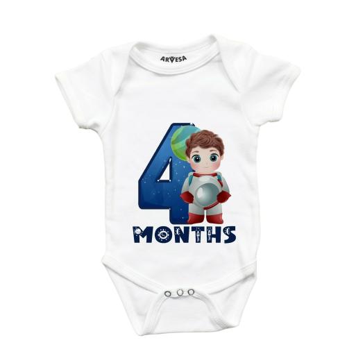 Arvesa 4 Month Monthly Birthday Unisex Baby 3-6 Month White Romper Onesie R-1012-M-WHITE