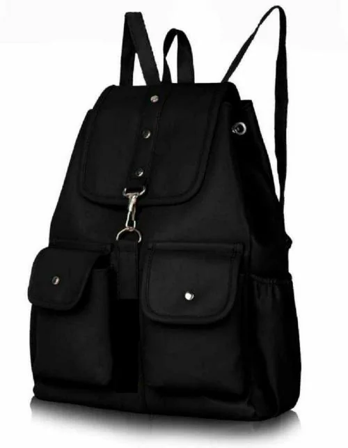 AS CREATION Black PU Leather Collage Backpack 7 L