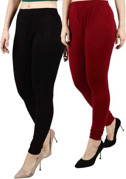 ASA Women Multicolor Solid Cotton Blend Pack of 2 Legging (Free Size)