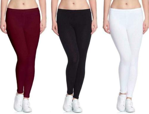 ASA Women Multicolor Solid Cotton Blend Pack of 3 Legging (Free Size)