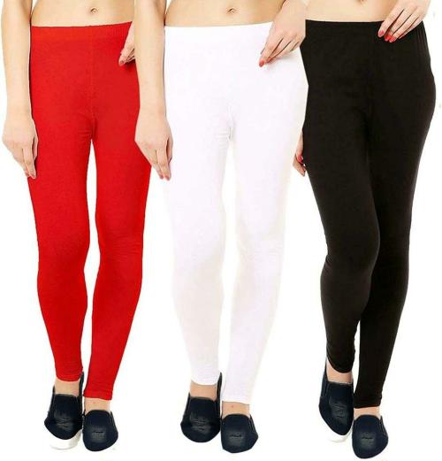 ASA Women Multicolor Solid Cotton Blend Pack of 3 Legging (Free Size)