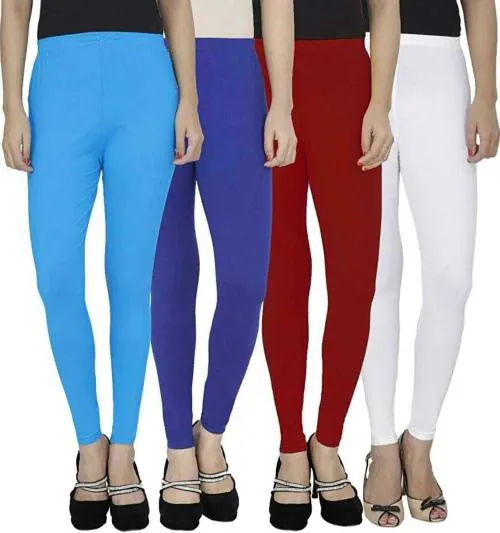 ASA Women Multicolor Solid Cotton Blend Pack of 4 Legging (Free Size)
