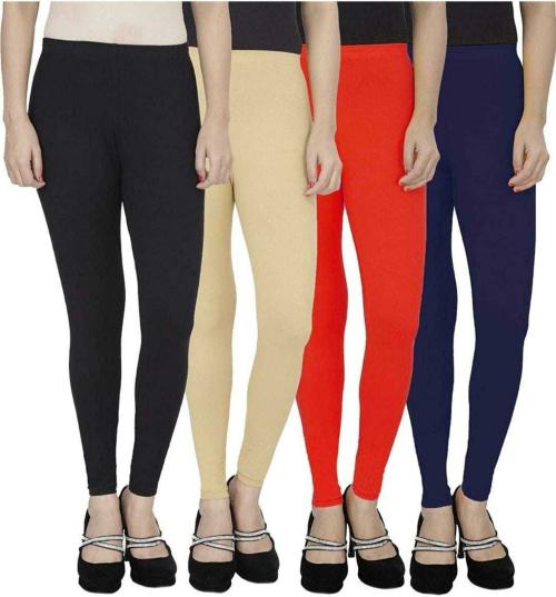 ASA Women Multicolor Solid Cotton Blend Pack of 4 Legging (Free Size)