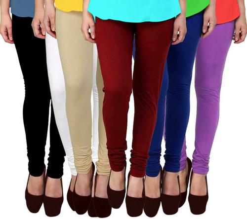 ASA Women Multicolor Solid Cotton Blend Pack of 6 Legging (Free Size)