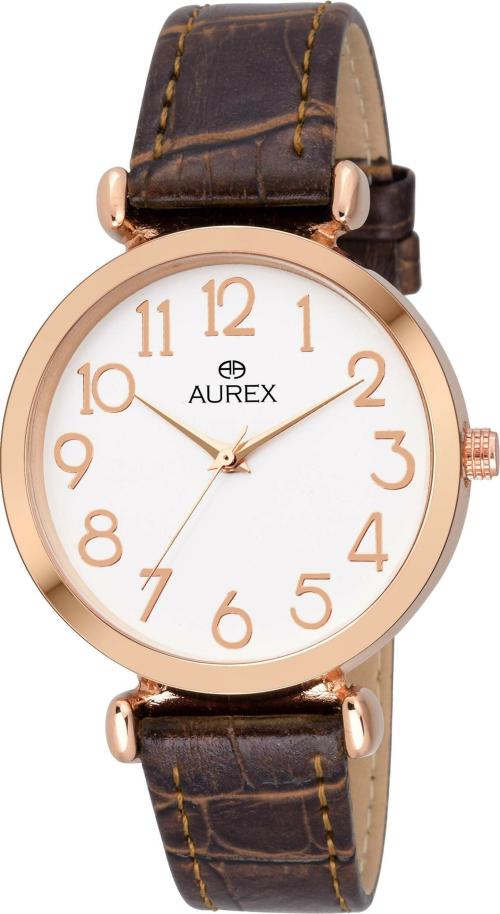 Aurex Analog White Dial Brown Strap Watch For Women - (Ax-Lr522-Wtbr)