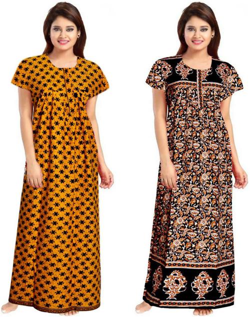 Averill Women's Multicolor Floral Cotton (Pack of 2) Nighty