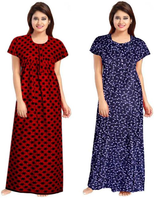 Averill Women's Multicolor Floral Cotton (Pack of 2) Nighty