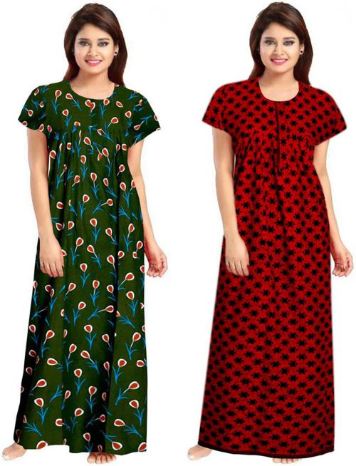 Averill Women's Multicolor Printed Cotton (Pack of 2) Nighty Set