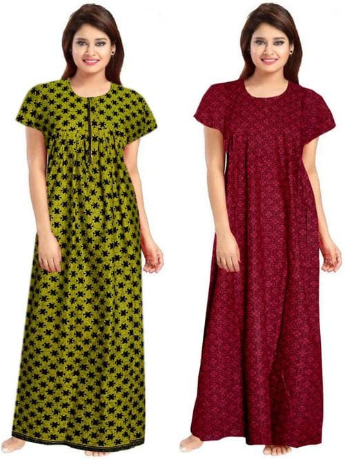 Averill Women's Multicolor Printed Cotton (Pack of 2) Nighty Set