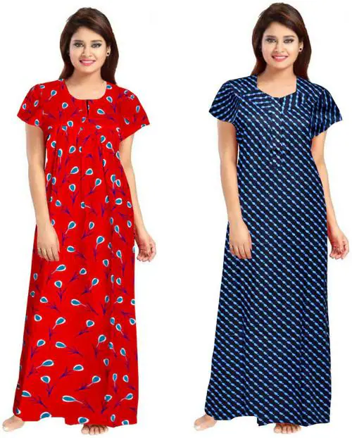 Averill Women's Multicolor Printed Cotton (Pack of 2) Nighty Set