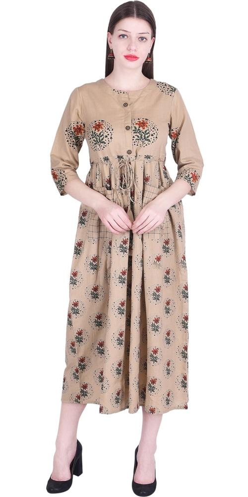 AVYCO Women Beige Bandhani Viscose Blend Flared Kurta (XXL)
