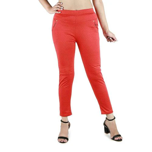 B&B-Buttons & Bows Women Red Lycra Blend Leggings